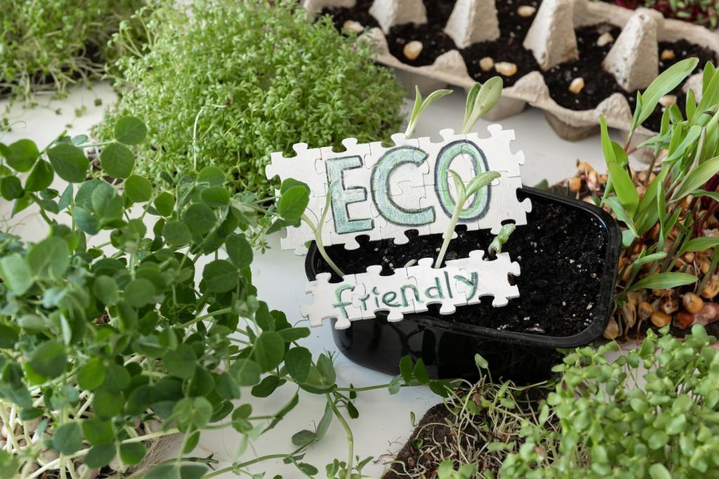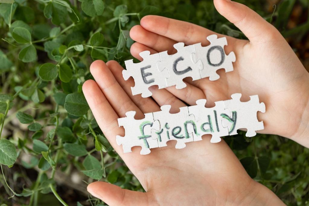 Robuste rPET-Gewebe oder recycelte Wolle verbinden Strapazierfähigkeit mit Kreislaufdenken. Prüfe Zertifikate wie OEKO-TEX oder GRS, teste Scheuerbeständigkeit und wähle reparaturfreundliche Bindungen, die sich bei Bedarf leicht nachnähen lassen.